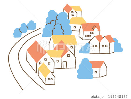 自然豊かな田舎に立ち並ぶ家々_色