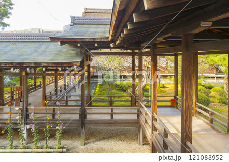 板目が美しい渡り廊下(回廊)、大覚寺、京都