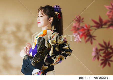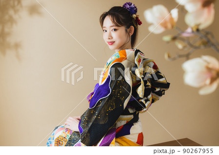 振袖の女性 黒