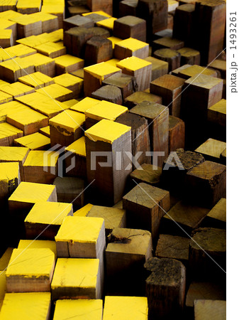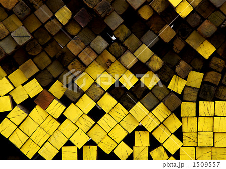 Industrial heads wood square shape of sawed timber (softwood processing) material that are stacked in a square on wood warehouse store, wood texture and background