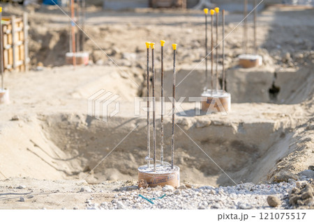 建築現場 基礎工事 摩擦杭 埋込み完了