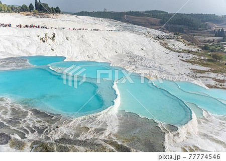View of natural travertine pools and terraces in Pamukkale. Cotton castle in southwestern Turkey