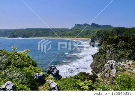 東シナ海の海岸線に野間岬を望む