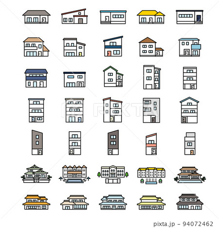 家のアイコンセット 戸建ビル2階、3階狭小住宅などの家のアイコンです。