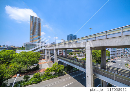 日本の横浜都市景観 7月。横浜市戸塚区の東戸塚駅 東口などを望む。西口のタワマンなども見える=22日