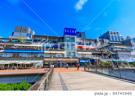 東京 港区台場の都市風景 アクアシティお台場とゆりかもめ