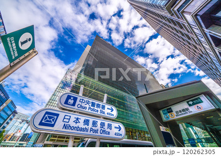 日本の東京都市景観10月3日。日本橋交差点や日本橋駅(出入口B6)とつながる東京日本橋タワーなど…