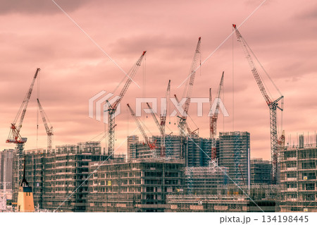 都市風景 東京 晴海フラッグ 2020東京五輪選手村 建設現場 2018年5月