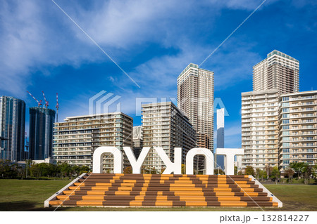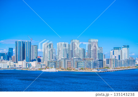 日本の東京都市景観 東京・晴海などのタワーマンションを望む