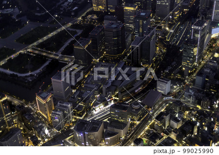 日本の東京都市景観 有楽町駅や新幹線などを望む