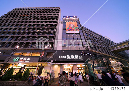 日本の東京都市景観 JR東日本 池袋駅・東武鉄道 池袋駅 西口(中央)などを望む