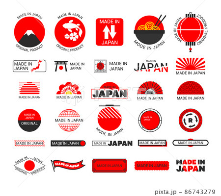 Japanese red circle rising sun sign from japan national flag with inscription of city name