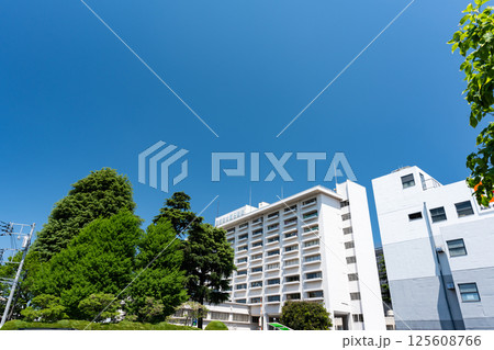 東京慈恵会医科大学付属第三病院 病棟 夏晴れの青空 東京都狛江市