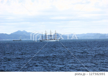 東京湾フェリーからの風景 東京湾(日本丸 帆船)
