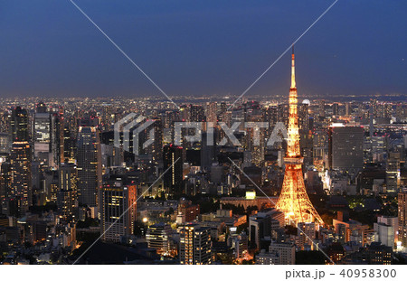 日本の東京都市景観 都市の夜景(東京タワーなど、街並みを望む)