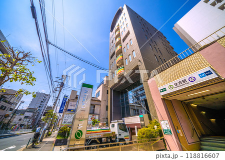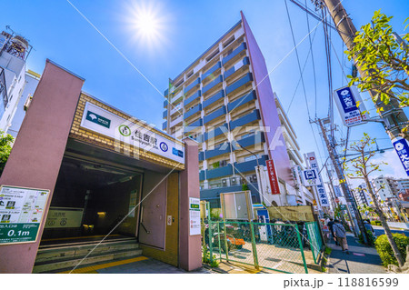 日本の東京都市景観 都営地下鉄 東京メトロ 住吉駅(出入口)を望む