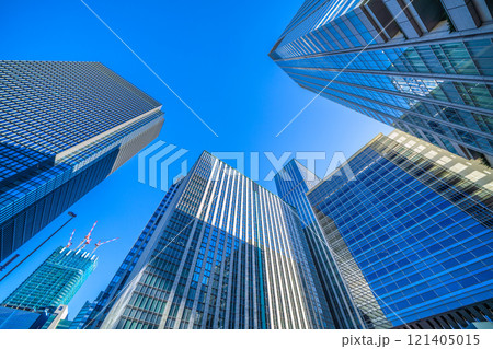 東京駅前 八重洲口のオフィス街 再開発が始まる 快晴 青空