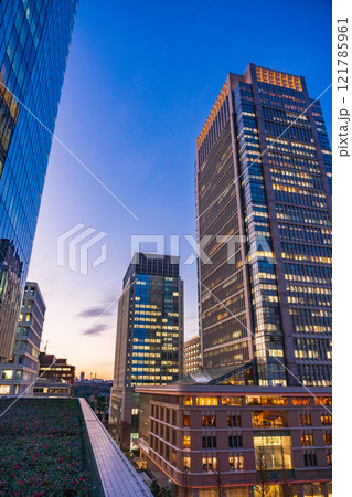 東京都千代田区の東京駅の丸の内側にある新丸の内ビルの夜景。