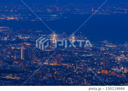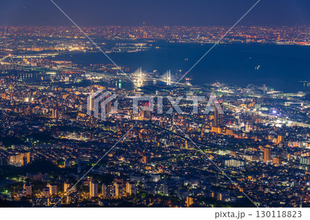 日本三大夜景の一つ「掬星台」から見た神戸市東部から大阪市にかけての夜景