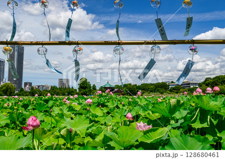 日本の東京都市景観 東京・上野。不忍池辯天堂などを望む