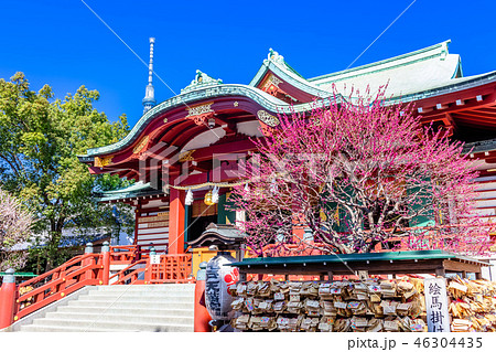 亀戸天神社 拝殿と梅の花 (東京都江東区) 2019年2月