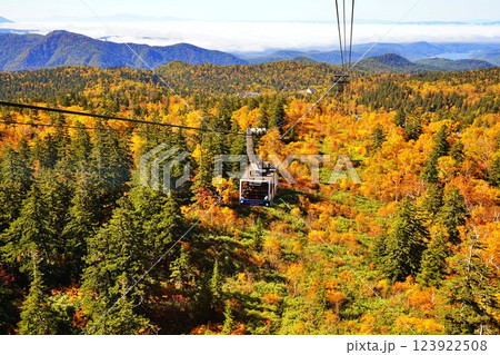 旭岳ロープウエイの車窓から望む大雪山系旭岳の紅葉