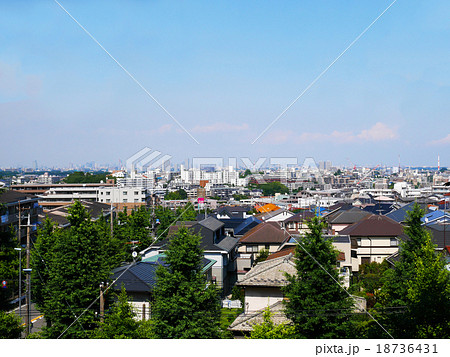 日本の横浜都市景観 青空が広がるあざみ野駅方面など街並みを望む