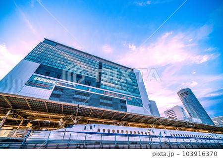 日本の横浜都市景観 インバウンド…(賑わう)新横浜駅や飛行機雲、太陽などを望む。新時代へ