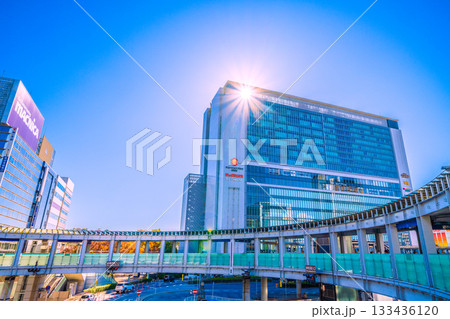 日本の横浜都市景観希望の光…躍進する新横浜。新横浜駅や円形歩道橋などを望む。新時代へ=27日