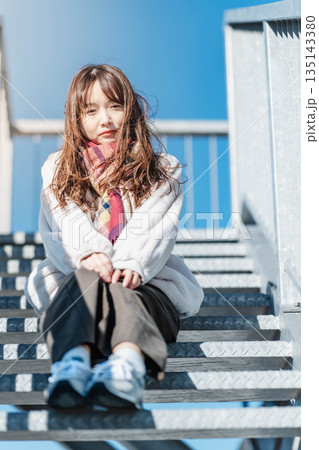 階段に座る女性