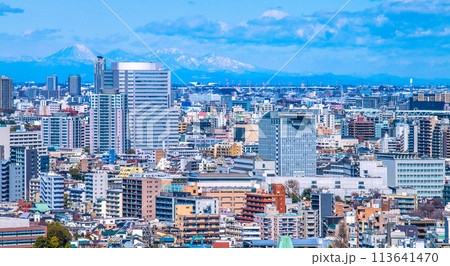 日本の東京都市景観 山々が見える珍景。文京グリーンコートや東洋大学、男体山、大真名子山などを望む