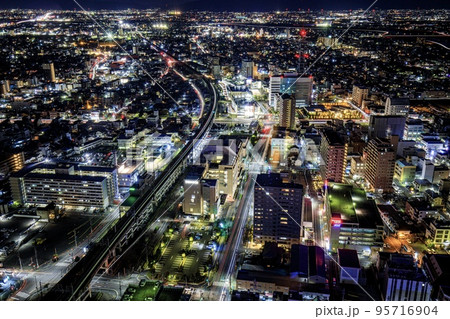 岐阜市 岐阜シティタワー43の最上階展望室から眺めた岐阜市内の夜景(岐阜駅方面)