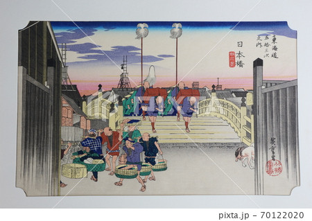 歌川広重 東海道五拾三次 日本橋 版画 骨董品