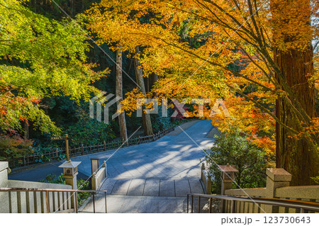 森町の遠江国一宮小國神社のもみじまつり紅葉のある道の風景(静岡県)