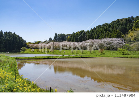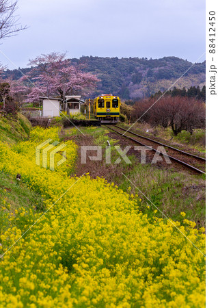 第三セクターいすみ鉄道 東総元駅付近 桜と菜の花