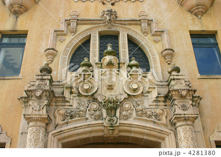 京都のまちなみ 四条河原町 東華菜館 正面四条通り側の玄関上部のレリーフ レトロモダン建築