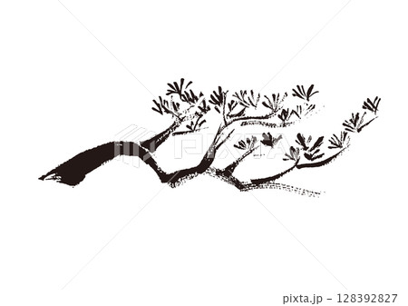 伝統的な日本の水墨画 松の枝 墨絵風イラスト