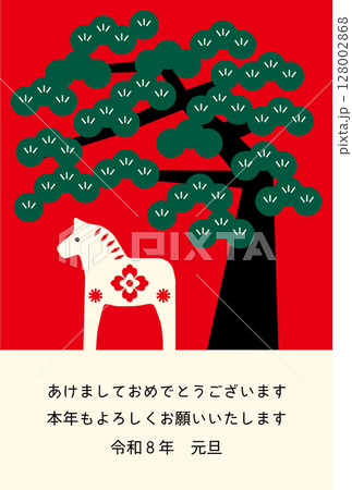 2026年年賀状。 午(馬)の干支入り 令和8年の年賀状テンプレート。和モダンな年賀状。