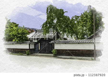水彩画風 松代 竹山町の町並み 旧恩田重信家住宅 長野県長野市