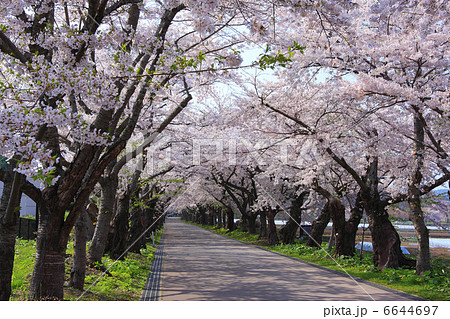 桜 花筏 さくら 春 日本 北海道 北斗 松前藩戸切地陣屋跡桜並木