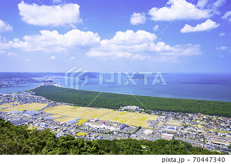 鏡山西展望台から見た美しい虹の松原と唐津市の町並み(佐賀県唐津市)