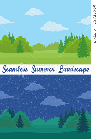 Daytimes forest landscape. Forest trees, sun shining woods and woodland nature day, night, morning and evening landscapes cartoon vector set