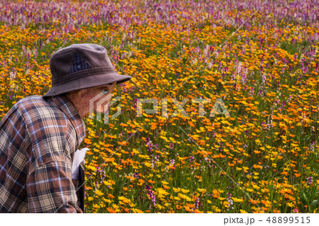 (静岡県)松崎町・田んぼをつかった花畑 足湯に浸かるふたり