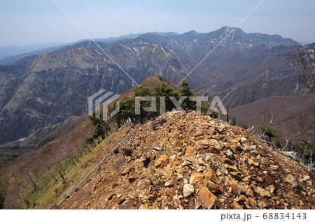 足尾 太平山山頂西側から太平山南西尾根上部と渡良瀬川源流の山々を見る