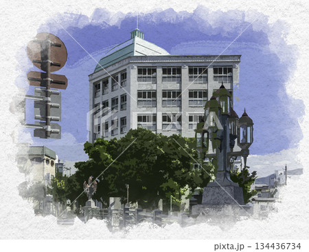 水彩画風 松本 松本市旧市役所跡「松本市営上土団地」 長野県松本市