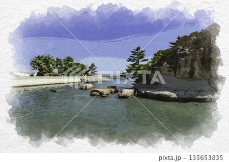 水彩画風 絵島 岩屋港 兵庫県淡路市