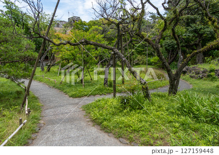 梅が咲く茅ヶ崎市の高砂緑地(松籟庵前庭)