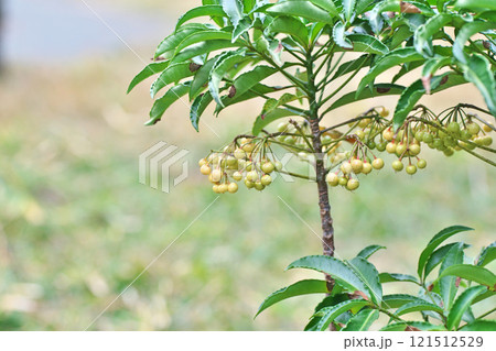 陽の光で際立つ赤いナンテンの実(冬、十二月)