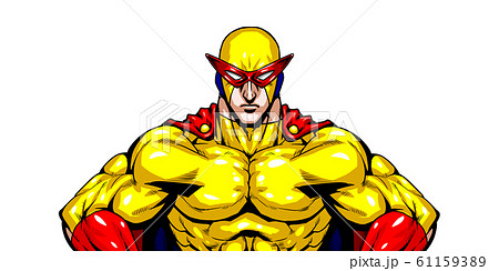 ヒーロー,英雄,超人,スーパーマン,劇画,漫画,筋肉,ボディビル,マッチョ,ポーズ,正面,白背景,