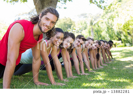 Fitness group planking in park